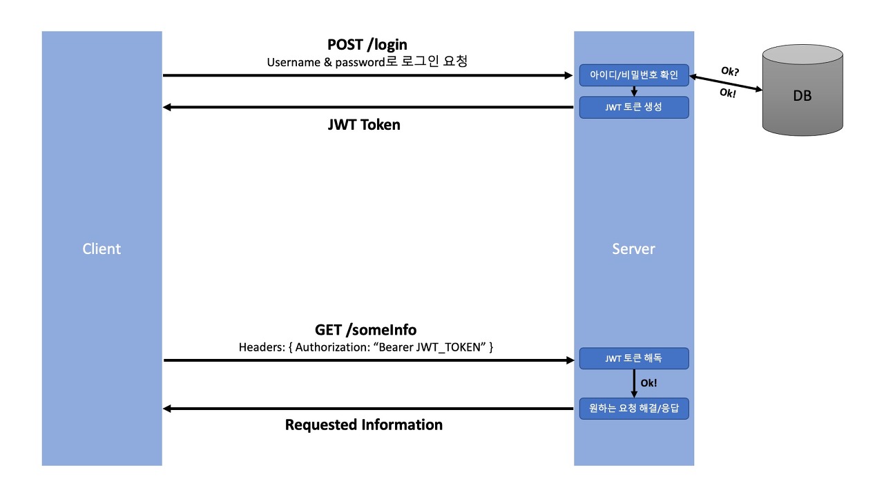 - 서버는 클라이언트에 대한 정보를 저장할 필요가 없어진다 (서버에서는 토큰 해독이 되는지만 판단한다)