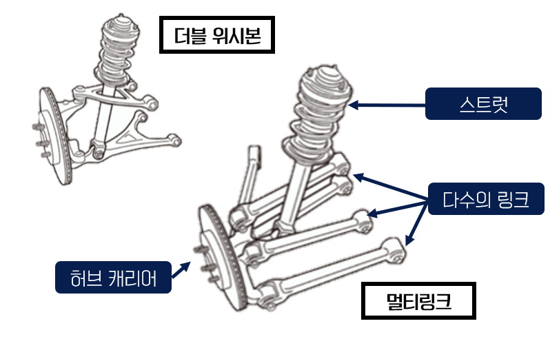 더블 위시본형과 맥퍼슨 스트럿 형 비교 링크