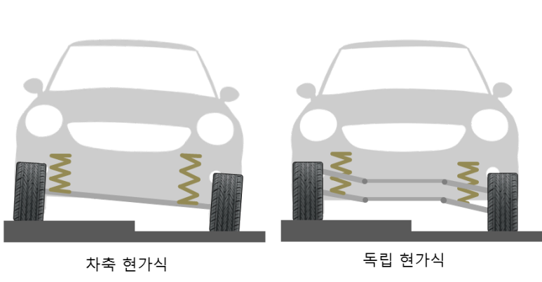 | 양쪽 바퀴를 한 개의 차축으로 연결 | 좌우의 차륜이 각각 독립해서 상하 운동 |