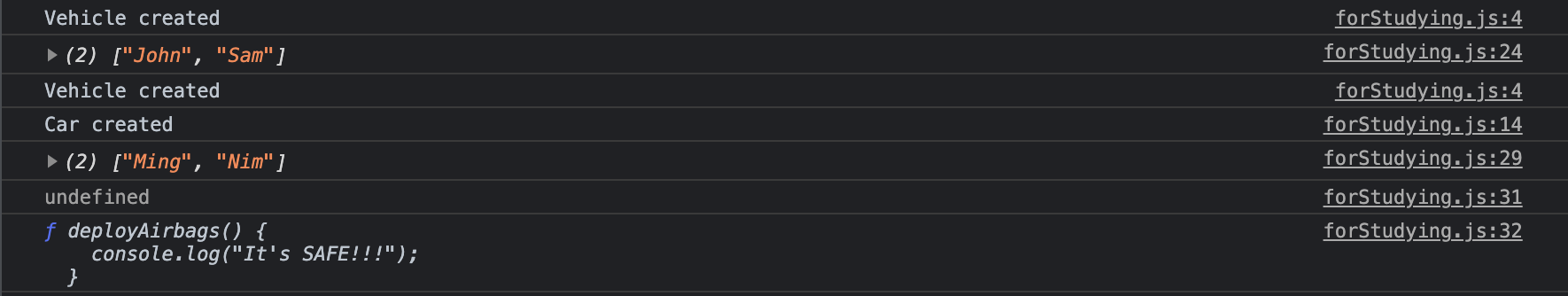 c에서는 deployAirbags를 호출할 수 있지만, v에서는 불가능하다. 상속은 단방향으로 이뤄지기 때문이다. Car 클래스의 인스턴스는 Vehicle 클래스의 모든 메소드에 접근할 수 있지만, 반대는 불가능하다.