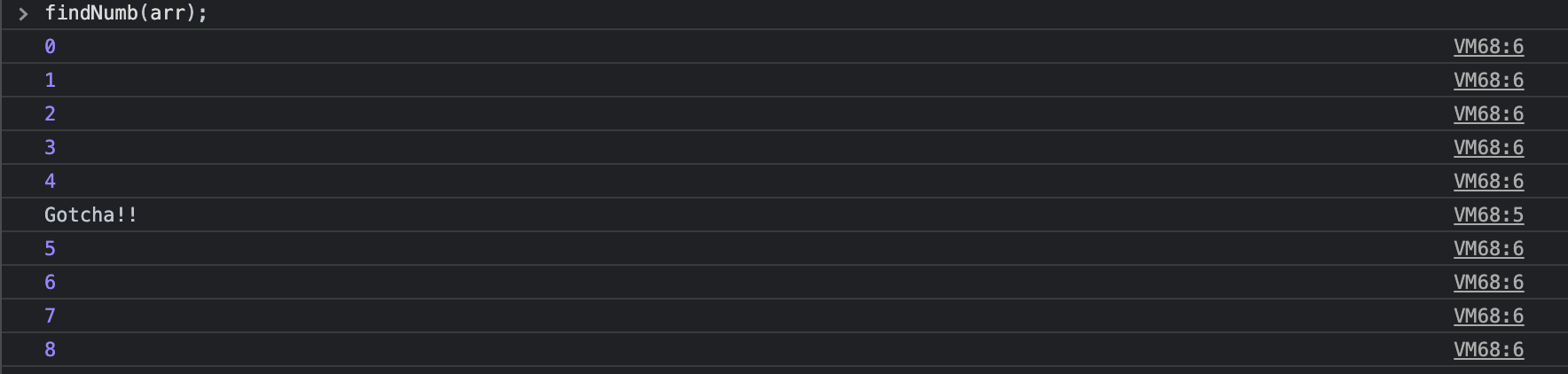 if (arr[i] === 6) console.log("Gotcha!!");